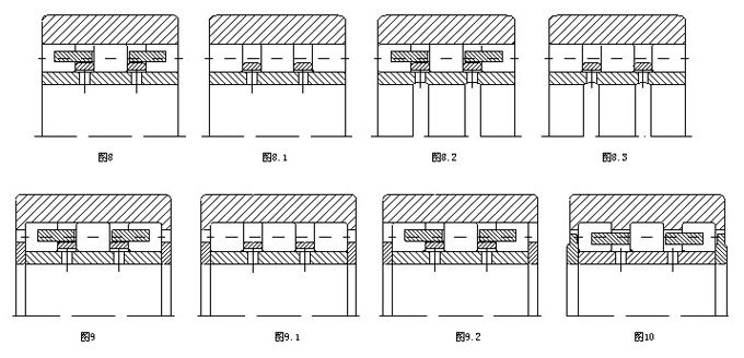 圓柱滾子背襯軸承有兩列或三列滾子,有滿滾子軸承(無保持架)或帶保持架軸承形式,可以帶有或不帶整體式擋邊或擋圈。無擋邊軸承的優(yōu)點在于它們特別簡單的幾何形狀和非常高的徑向載荷能力。無擋邊或擋圈的圓柱滾子背襯軸承不能承受任何軸向負(fù)荷。因此有必要在外圈和支承鞍座側(cè)面之間放置青銅或塑料止推墊圈。帶有擋邊(或擋圈)的背襯軸承不需要止推墊圈,因為這些軸承的設(shè)計使它們能夠承受同時作用的徑向力和軸向力。圓柱滾子軸承是常用的背襯軸承。