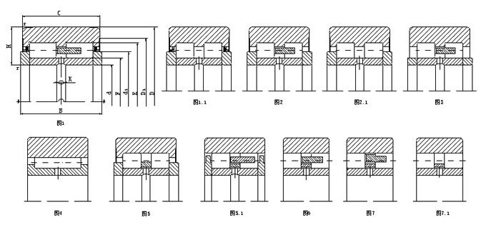 | Bearing NO. | d | D | B | C | H | d1 | D1 | E | F | rmin | K | N* | 動 | 靜 | 動 | 靜 | 動 | 靜 | Mass | Design |