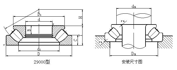 該類軸承主要應(yīng)用于承受以軸向負荷為主導(dǎo)的軸、徑向聯(lián)合負荷,單徑向負荷不得超過軸向負荷的55%,與其他推力滾子軸承相比,此種軸承摩擦系數(shù)低,極限轉(zhuǎn)速高,且具有調(diào)心性能,本型錄所列29000型推力調(diào)心滾子軸承為經(jīng)過優(yōu)化設(shè)計的加強型軸承,此種軸承的球面滾子為非對稱性球面滾子,能減少滾子和滾道在工作中的相對滑動,并且滾子長、直徑大、滾子數(shù)量多、負荷容量高,通常采用油潤滑,轉(zhuǎn)速較低時也可脂潤滑。